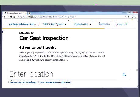 Find a car seat safety inspection site near you. Even if you read the manuals carefully and are sure you’ve installed the seat properly, you should have an expert check your work and offer tips. Contact your local police department or fire station to see if they offer car seat inspections. Alternatively, contact your government’s transportation or highway safety departments, or your car insurance company, for info on inspection sites. You can also find U.S. inspection sites online at https://www.nhtsa.gov/equipment/car-seats-and-booster-seats#installation-help-inspection