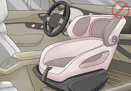 Don’t put a child safety seat in the front passenger seat. All child seats—rear-facing car seats, front-facing car seats, and booster seats—should always be installed in the back seats of vehicles. Front airbags are designed to protect an average adult male, and the force of their inflation can easily cause serious injury to a child. If your vehicle doesn’t have a back seat and you have no other driving option, consult the owner’s manual on how to temporarily disable the front passenger air bag. This is still more dangerous than a back seat installation, though.