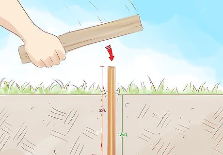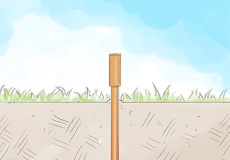In addition to the 8 feet (2.4 m) above ground, you will also need about 2 feet (0.6 m) of pipe to drive into the ground; this is the support for the structure and also allows the above ground section to be removed and modified, or swiveled if you like. Try using a hammer and block of wood to hammer the 2 foot (0.6 m) section into the ground about 1.5 feet (0.5 m) deep. The wood is used so you do not hit the pipe directly with the hammer which would bend the pipe.