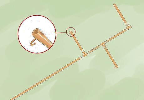 Prepare and add the actual limbs that you will hang the feeders or houses on. The further out you want your feeders hung, the less weight the pipe will bear. This image shows somebody using 1" copper pipe which seems to be holding the weight well but it is a soft metal and will kink easily so it is not suggested making the limbs more than 12 or 18 inches (30.5 or 45.7 cm) long. A good idea is to find a way to secure the feeders in such a way that they could spin easily for a different look and could be removed for cleaning and filling. The easiest way some would think to do this was to drill a hole in the bottom of each arm about an inch from the end. A hole is drilled large enough for a deck nail shaft to fit but not the head. Taking a pair of vice grips, the nails are bent so the pointed end acts as a hook which can be fed through the inside of the hole drilled in the pipe so the nail hook is suspended by its head and can spin freely.