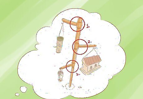 Decide on the height. The starting point is deciding how tall you want the structure so you will know how much pipe is needed. A good size is a pole that is about 8 feet (2.4 m) tall so the feeders hang at between 5 and 7 feet from the ground.