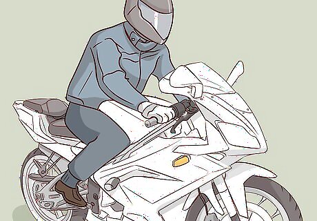 Take the bike out for a test ride. First, start the engine and listen for any unusual noises, such as creaking, rattling, or grinding. If there are no apparent problems, ease your way onto a well-maintained stretch of road that offers safe conditions. Pay close attention to the way the bike handles acceleration, turns, braking, and shifting. Everything should feel smooth, stable, and responsive. If the seller is reluctant to let you test the bike on your own, see if they’d be willing to let you hop on as a passenger, or at least watch and listen from a close distance to get a sense of how it rides. Don’t forget to bring your driver’s license and insurance card along with you on your test ride. It’s also a good idea to come prepared with a helmet and other safety gear in case your seller doesn’t have these things available.Tip: Once you get back, inspect the bike thoroughly once again, this time looking for leaks or drips. If something’s cracked, you might not find out about it until you’ve been out for a spin.