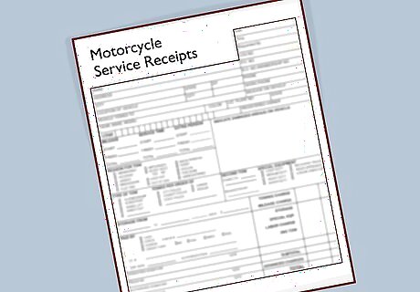 Ask to see the motorcycle’s service records or receipts. Responsible owners almost always hold onto documents showing their bike’s service history. If the owner is the do-it-yourself type, see if they’ve kept a logbook or similar informal record indicating how much work they’ve put into the bike over the years. A long service history isn’t necessarily a bad thing—in some cases, it may actually suggest that the owner has taken very good care of the bike. What’s more important is to take a close look at what’s listed there (and what’s not) and make sure that they’ve been maintaining the big stuff. If you decide to buy through a dealership, they should be able to pull up a full service record for any of their vehicles since the time it arrived on the lot.Tip: You can also obtain a full history of a bike’s professional service and other key title information online through Cyclechex, a collaboration with Kelly Blue Book designed specifically for motorcycles.