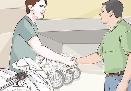 Keep your budget in mind while negotiating the final price. Study retail pricing guides or read through classified ads to get an idea of the bike’s market value. Then, put those numbers side-by-side with your approximate budget to come up with an exact amount that you’d be willing to spend. Most used motorcycles don’t end up selling for their initial asking price, so don’t be afraid to haggle a bit to bring the number down to something more agreeable for your wallet. When it comes time to make an offer, be realistic. Lowballing the seller may just insult them and make them less willing to compromise. You can work out the payment details with the seller after you’ve agreed on a price. Make sure you’re both clear about the terms of the transaction, as they’ll be recorded in the vehicle’s bill of sale.