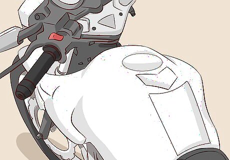 Climb on the motorcycle to try out the suspension. Straddle the seat and bounce up and down gently. The forks, or the pronged pieces connecting the front wheel to the frame, should absorb the motion and return to their original position quickly and quietly. By contrast, the rear shocks should hold firm, preventing the back of the bike from dipping too much. Grinding, squeaking, and poor impact absorption, along with obvious visible damage like scrapes, cracks, dings, and rust, are all evidence of a suspension system that’s taken a lot of abuse. Keep your eyes peeled for oil coming from the shocks or struts—it might be coming from a broken seal.