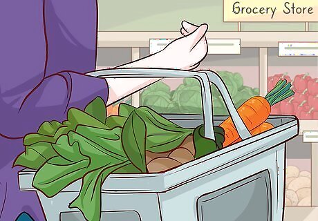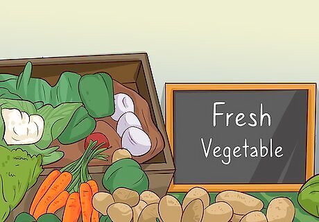 Look for in season foods at your local grocery store. While they tend to carry many out of season options as well, you can still find fresh in season foods at grocery stores. It can be helpful to make a list of the foods that are locally in season before you shop so you’ll know what foods to buy and what to avoid. Some grocery stores label or put a sign up that indicates what items were locally grown, making it easier for you to assess what’s in season.