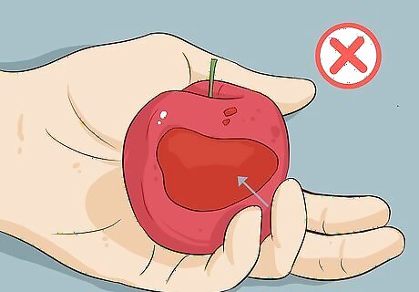 Inspect produce for signs it’s not at peak freshness. While shopping, if you aren’t sure if a food is in season or not, you can examine the produce for signs that it’s not in season or fresh. For example, in most cases, if the produce has any bruising or discoloration, wilting, or unpleasant odors, it’s likely that it’s either out of season or not at peak freshness. In addition, checking produce for firmness can be a good way to assess if it was cultivated in season. For example, when you’re buying apples, avoid any options that are soft and instead, opt for options that are firm and don’t squish in when you lightly squeeze them.
