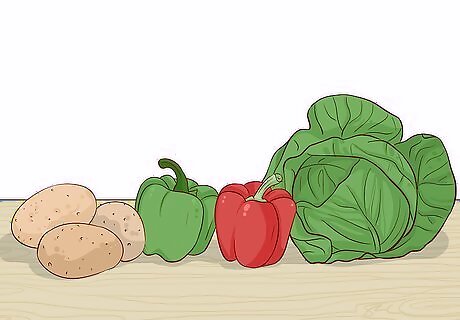 Get cabbage, peppers, and potatoes all year round. While most vegetables are seasonal, cabbage, peppers, and potatoes can grow in variety of climates. Therefore, regardless of where you live, you’ll likely be able to find these options in season all year. While you may not be able to find them grown locally, cabbage, carrots, celery, and onions are also in season in many places all year round.