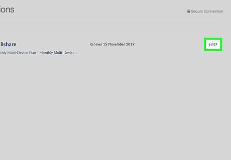 Click Manage next to ″Subscriptions.″ A list of subscriptions will appear.