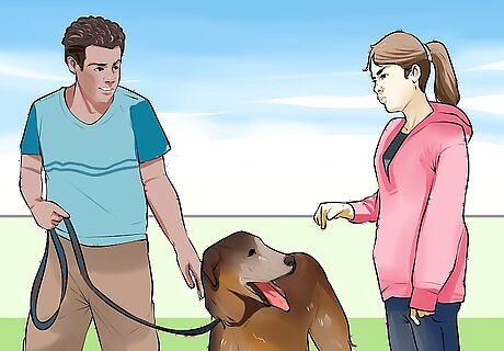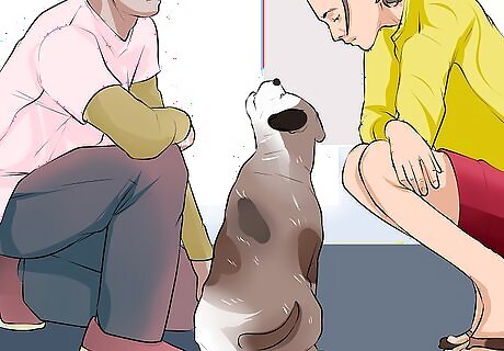Socialize the dog. While you shouldn't overwhelm the dog with too many people in the first couple of days, you should try to socialize the dog with friends and family in the first couple of weeks. Have them come over and visit, so that your dog can learn to distinguish between strangers and friends. Don't force people on the dog. Let the dog approach them.