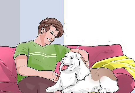 Give your dog a chance to settle in. Don't overwhelm the dog with too much family time in the first couple of days or so. Let the dog get used to the environment without bombarding him with four people at once. You can visit with the dog one or two at a time, but try to limit too many people at once.