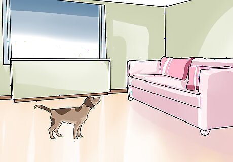 Include a safe space. When a dog is in a new environment, it will want a safe place to retreat to when it feels overwhelmed. A dog bed is a good example, but a crate can be even better, as your dog will view that as its "home" within your home. However, it is important to use the crate for training purposes only. Do not just get a crate and leave your dog in it. Your dog should only be in the crate for short lengths of time. Get a large enough crate. A crate gives your dog a safe space to call its own. However, it needs to be large enough to accommodate your dog. Your dog should be able to stand up, sit comfortably, and lay down. Otherwise, the dog may find the crate uncomfortable. Never use a crate for punishment. If you put your dog into the crate as a punishment, then this defeats the purpose and your dog will no longer feel safe going into the crate. Do not leave your dog in the crate for more than a few hours. You should never leave your dog in the crate overnight or for extended periods of time because this can cause them to feel anxious and depressed due to a lack of exercise and interaction.