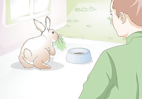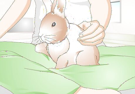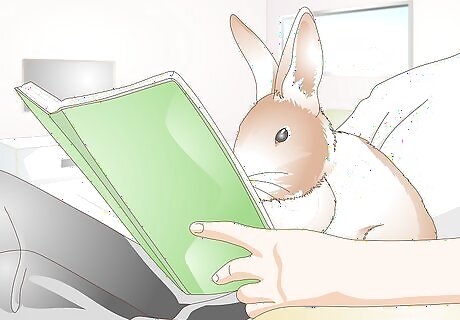 Find quiet activities to do with your rabbit. Although your rabbit will appreciate all of the things you do to care for him, he wouldn’t mind having some time to rest and relax with you. For example, hold him in your lap when you are watching TV or doing another quiet activity on the couch, such as napping or reading a book. If you have a yard, let him lay on the grass in the yard on a warm summer day.