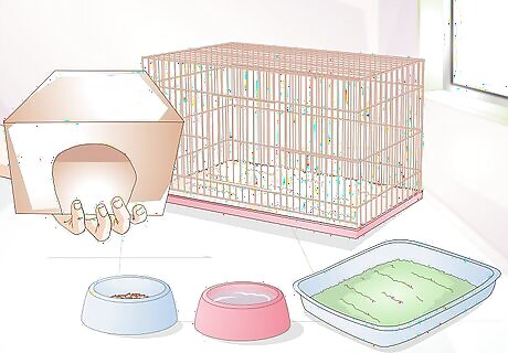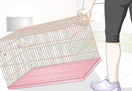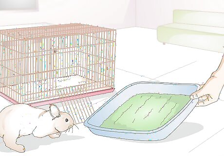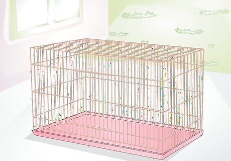 Select a housing type for your disabled rabbit. If you have decided to take on the responsibility of caring for your disabled rabbit, you will first need to create a comfortable place for him to eat, rest, and play. There are several housing options: an exercise pen, a human crib, a dog crate, and a cage. Each option has its benefits, so it will be up to you and your veterinarian to decide which option will work best for your rabbit. Factors to consider when deciding on a housing option include your rabbit’s mobility and his ability to control his bladder. Your rabbit’s housing should be free of obstacles and allow you easy access to him. Exercise pens work great for disabled rabbits, since the pens have a natural openness and provide your rabbit with freedom to move around. Pens can also be manipulated to fit different spaces. For a disabled rabbit, the pen should be low enough so you can easily reach down and access him. Human cribs are also good choices. In addition to being open and easily accessible, a crib has built-in supportive bedding and keeps your disabled rabbit off the floor where he could become cold. If you can, find a crib with wheels so you can move it closer to where you are. Medium- to large-sized dog crates work well for disabled rabbits who should live in a more restricted space. Crates are also very portable and provide easy accessibility. Rabbit cages are generally not suitable for disabled rabbits, but can be useful to restrict a rabbit’s movement shortly after an injury. Fortunately, accessories such as food and water bowls are designed to work well in cages.