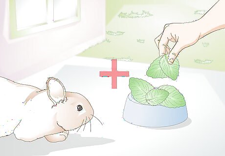 Consider feeding your disabled rabbit herbs and supplements. In addition to the staples of your disabled rabbit’s diet, it may be good to feed some extra herbs and supplements to boost his health. Fresh herbs include basil, fennel, and peppermint leaf. Examples of supplements are rolled oats, pumpkin, and flaxseed. Another good herb is blackberry leaf, which could help stimulate your rabbit's appetite. If your rabbit's disabilities are causing him stress, try feeding him lemon balm or lavender to relieve the stress. Rolled oats can help your rabbit increase or maintain his weight. Pumpkin is good for relieving digestive upset. Talk with your veterinarian before adding herbs and supplements to your rabbit’s diet.