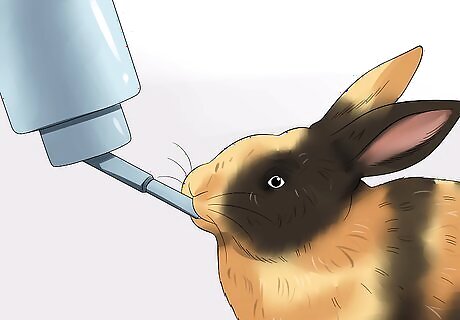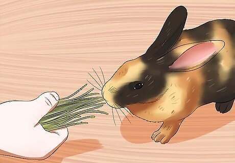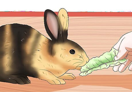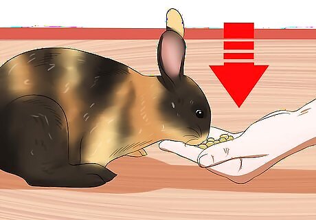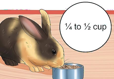 Feed him enough pellets. Your rabbit needs to be fed the right types of food every day to ensure he has the nutrients needed for his health and digestion. This includes commercial pellets, which should be fresh as possible. Your mature rabbit should be fed at least ¼ to ½ cup of pellets every day depending on his size. If you rabbit is younger than a year old, allow him to eat as much as he wants so he can grow properly.