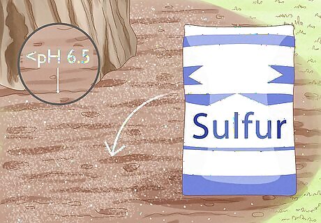 Apply lime or sulfur to correct your soil’s pH. If the test results show that your soil is less than 6.2, then buy a package of lime from your garden store. If the test results show that your soil is more than 6.5, then buy some sulfur. Sprinkle the lime or sulfur across the ground under your tree, as directed by the product’s packaging. The lime helps to correct overly acidic soil and the sulfur does the same thing for alkaline soil. You may have to apply the sulfur or lime multiple times before you see results. The packaging will tell you about application frequency and when/if you’ll need to re-test.
