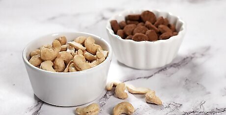 Add protein and omega-3 fatty acids to your diet. Keratin, the protein that makes up your nails, can be better produced if you’re consuming more foods like fish, nuts, and beans. You can also try taking daily supplements like biotin and fish oil, which can be found at your local grocery or health food store. Vitamin B can also strengthen your nails, zinc can help eliminate white spots, and iron can help stop the formation of nail ridges. Vitamins A and C can help make your nails more hydrated and glossy. The recommended daily amount of protein is .8 grams (0.0018 lb) per 1 kilogram (2.2 lb) of your body weight. There is no recommended daily dose of omega-3 fatty acids.