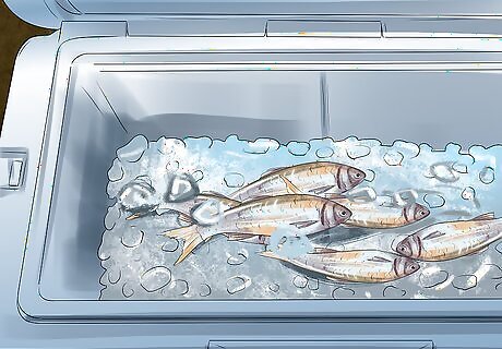 Keep the bait fresh. Catfish aren't going to eat fish pieces that have been sitting out, so you'll need to store them in a bait cooler to keep them cold during the hours you'll be spending on the water. Keep nightcrawlers in a container inside a cooler. Keep cut baitfish on ice. Keep live baitfish in a bucket of cool water.