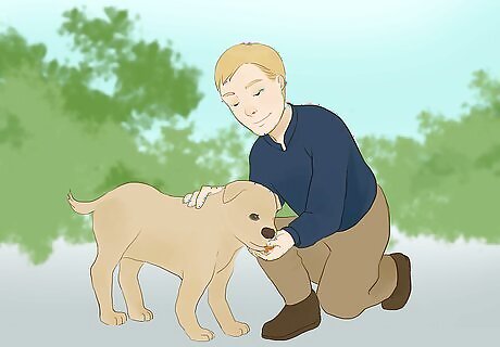 Reward your dog for good behavior. You want your dog to associate choosing the appropriate behavior with gaining a reward. Thus, as soon as your dog ignores the thing it wants to chase, you should immediately give it a treat. Each time it focuses on you instead of the cat, lavish your pooch with their favorite treats and affectionate praise.