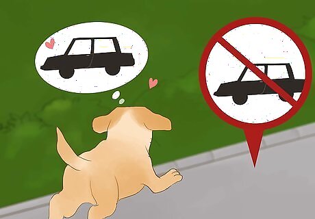 Manage your dog’s environment to prevent them from chasing. You can head off you pooch’s inappropriate behaviors by anticipating them. If you are approaching something that you know your dog loves chasing, head in another direction or give it a wide berth. For instance, if they love chasing cars, choose a path that will avoid traffic or drive them directly to a park where there are no cars present.