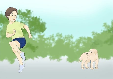 Resist the urge to follow your dog. You want to keep your dog in sight, but running after them is likely to make them stray further. It will also make them think that you’re joining in the chasing game they're playing, which will only encourage them to continue running away rather than stopping. Keep in mind that your dog runs faster than you, so you're probably not going to catch the dog by chasing it.