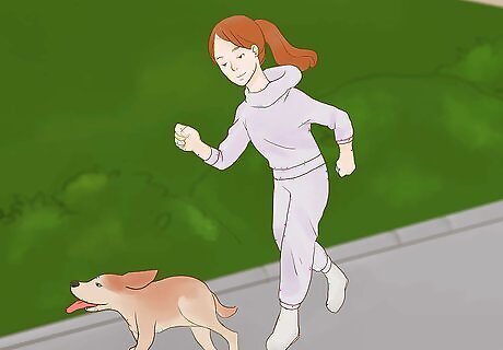 Give your dog plenty of appropriate exercise and play. If you give your pooch an alternative, healthier way to express their energy and instincts, they will be less inclined to go chasing after things for fun and stimulation. This means that you need to be sure that they’re getting enough physical exercise to tire them out and enough mental exercise to keep them engaged. If your dog is high-energy but has a tendency to run away, you can still exercise them by running them in enclosed, designated off-leash areas. To stimulate them mentally, give dogs chew toys, play fetch with them, or have them sniff out treats that you’ve hidden.