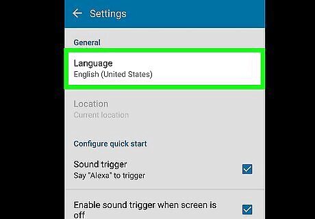 Tap the drop-down menu and select a different language. Selecting a different country will cause Alexa to speak with that regional accent. Your options for English are: United States Canada India Australia United Kingdom.