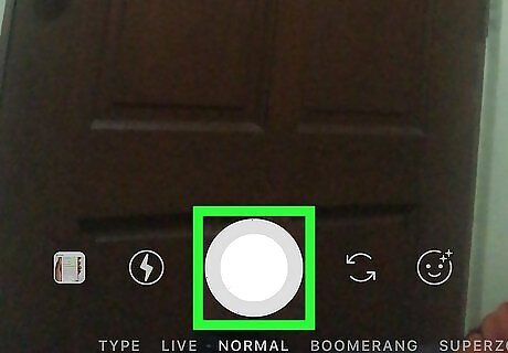 Tap the white circle button at the bottom. This is the Capture button. It will take a new picture, and allow you to add it to your story. Alternatively, press and hold the Capture button to record a video.