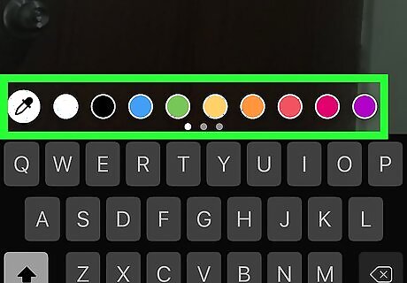 Select a font color on the color row. You'll see a row of all the available colors above your keyboard. Just tap any color here to change your text color. Optionally, you can select the eyedropper tool here, and select a color for your text from the background picture.