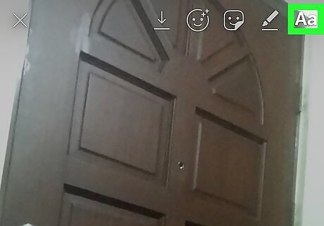 Tap the Aa icon on the top-right. This button will allow you to type text on your picture or video.