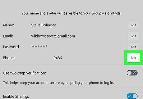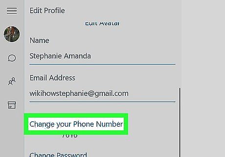 Click Change Your Phone Number. It's about halfway down below your email address.