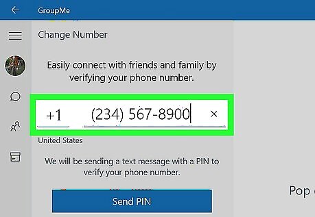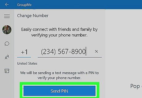 Enter the verification PIN. Enter the PIN number you received in the verification text message from GroupMe.