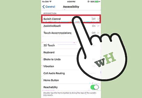 Scroll down and tap Switch Control. This will be under the “Interaction” tab. On the Switch Control menu, you will see several options under “Timing”. Auto Scanning Time: This menu allows you to adjust Switch Control's scanning intervals. Pause on First Item: This gives you the option to set the Switch Control's scanning to pause on the first item in a group. Loops: This allows you to set how many times Switch Control cycles through the screen. Move Repeat: This gives you options to set a movement action to repeat while holding down a switch, and how long to wait before repeating. Long Press: You can set how long to hold down a switch before it’s accepted as a switch action.