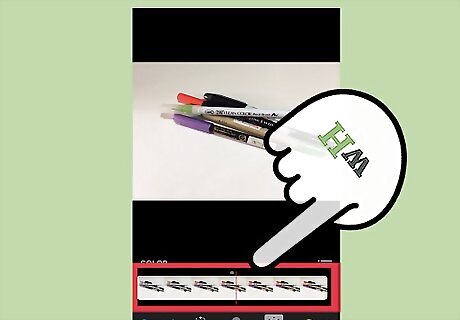 Tap the color adjust button. It's the circle icon surrounded by dots at the bottom of your screen.