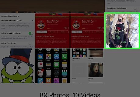 Tap an album. You should have several albums listed here, including "All Photos" and "Videos". If you don't see any albums, tap Albums in the bottom right corner of the screen.