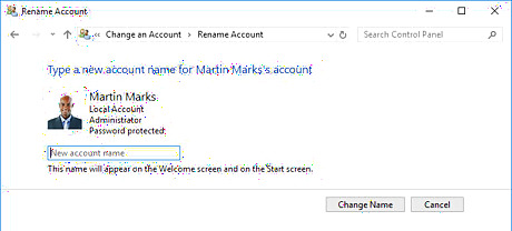 Restart your PC to the logon screen. You will see your user account name has been changed.