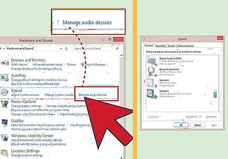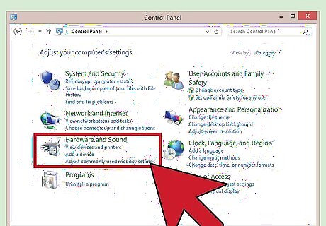 Click on "Hardware and Sound." It should be on the left-side of the pop-up.