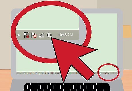 Find the speaker icon on the taskbar. It should be on the right side of the task bar, right next to where the time and date are displayed.