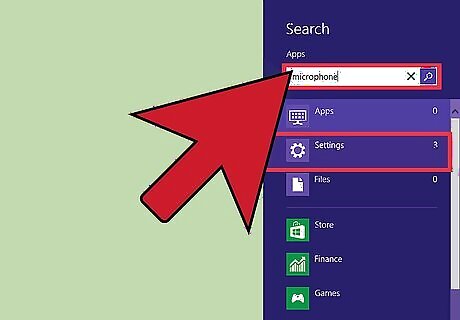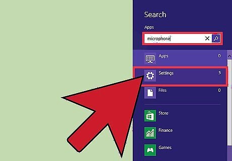 Start typing in "microphone." This will bring up several results, including one that says "Settings."