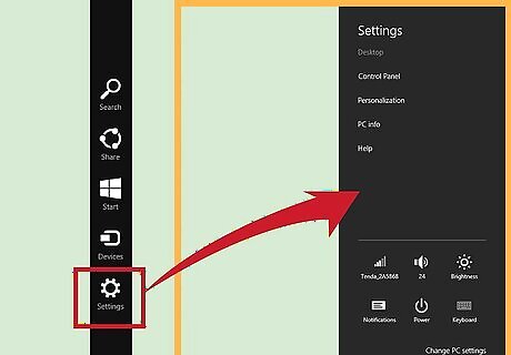 Select "Settings" from the menu. You will get a side menu that says things like: Control Panel, PC Info, and Help.