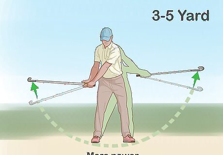 Use more power to make your shot travel further. Bring your club back further during your backswing and swing harder to put more power into your chip shot. Hitting the ball hard will result in a far shot that will get a lot of air. If you need to clear an obstruction that is 3–5 yd (2.7–4.6 m) long, use a longer backswing and put more power in your shot.