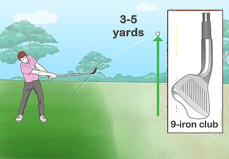 Use a 9-iron to get more air than a 6-iron. If you have to go over a lot of rough grass, a 9-iron is the best club to use. A ball hit by a 9-iron will also roll a good distance after it lands. Aim your shot for the front of the green and let the ball roll towards the intended area. A ball hit by a 9-iron will go 3–5 yd (2.7–4.6 m) in the air.