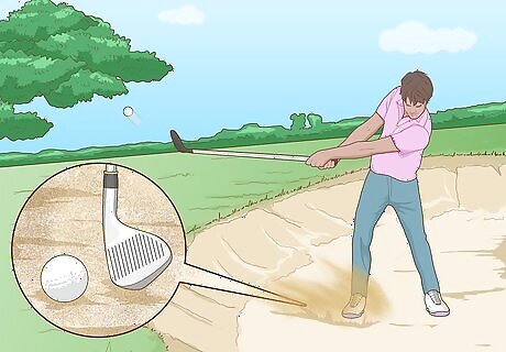 Use a sand wedge when the ball is stuck in the sand. Sand wedges are bigger clubs that give the golf ball more air than if you used a 9- or 6-iron. In addition, a ball hit by a sand wedge won’t roll as much. Use a sand wedge if you’re stuck in a bunker or need to make a chip shot that stops quickly. When using a sand wedge, aim the ball as close to the target as you can.