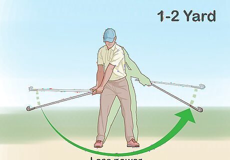Use less power if you don't need the ball to travel far. If you need the ball to clear a smaller obstruction, reduce the distance of your backswing and put less power into your forward swing. Less power in your swing will also reduce the amount that the ball rolls after landing. If you need to clear an obstruction that is 1–2 yd (0.91–1.83 m) long, you may want to use less power and put less backswing on your shot.