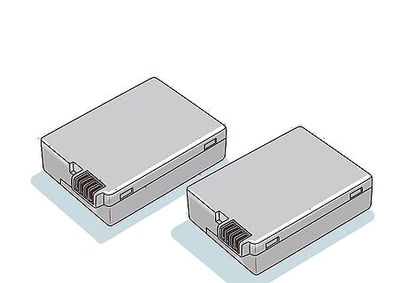 Have extra batteries on hand when you’re filming. Look in the manual that came with your camera or check the battery itself to see what kind of battery your camera uses. You can order spare batteries online or go to a camera store and ask if they sell the battery type you’re looking for. Having extra batteries around when you’re filming will prevent your camera from shutting off in the middle of a shoot. Make sure your spare batteries are fully charged before tossing them in your camera bag. Most camera battery chargers have a light on them that indicates when a battery is fully charged.