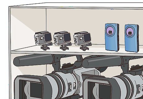 Choose an action camera if you want to shoot videos on the go. Action cameras are compact digital video cameras that allow you to shoot hands-free, high-definition videos. Most action cameras come with attachable components that let you mount them on bikes, helmets, and other outdoor gear, making them a great option if you want to record yourself doing different outdoor activities. Action cameras are durable, and many models are built to withstand impacts and water damage.