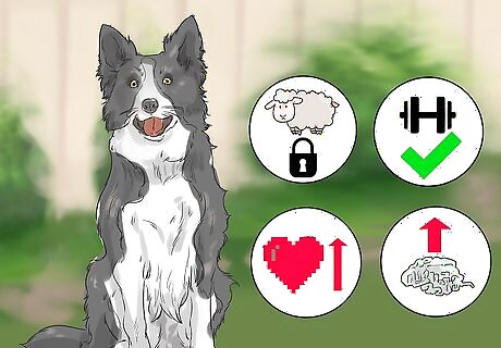 Adopt a Border Collie. If you are looking for an energetic, intelligent, and affectionate dog that is also easy to train, a Border Collie could be the perfect dog for you. This herding breed is filled with energy and requires at least 30 minutes of intense aerobic exercise each day such as running, hiking, or playing Frisbee. A Border Collie is a great pick for active individuals and families that love to spend time outdoors. A Border Collie lives 12-15 years, and weighs anywhere from 30 to 45 pounds. This breed is generally healthy and requires access to open space for running. Only consider this breed if you are willing to commit to providing daily sustained exercise and mental stimulation. Otherwise, Border Collies can develop bad behavior due to boredom.