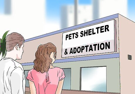 Visit your local shelter. Before you decide to buy a dog from a breeder, you should consider adopting from a local animal shelter. Adoption costs less than purchasing a puppy, and there are lots of dogs in your area that are in need of homes. Visit several shelters in person and online to see if you can find a dog that is easy to train.