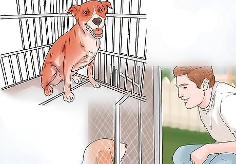 Meet the dog. Once you've located a dog that seems to be a good fit, take a trip to meet the dog. Be sure you involve all members of your family in this process. It is especially important that you also involve canine members of the family to ensure your new addition will get along well with the pack. Spend at least an hour with the new dog, take it on a walk, and engage in play before making a commitment to bring it home. Try some simple commands during your visit, like sit or stay.